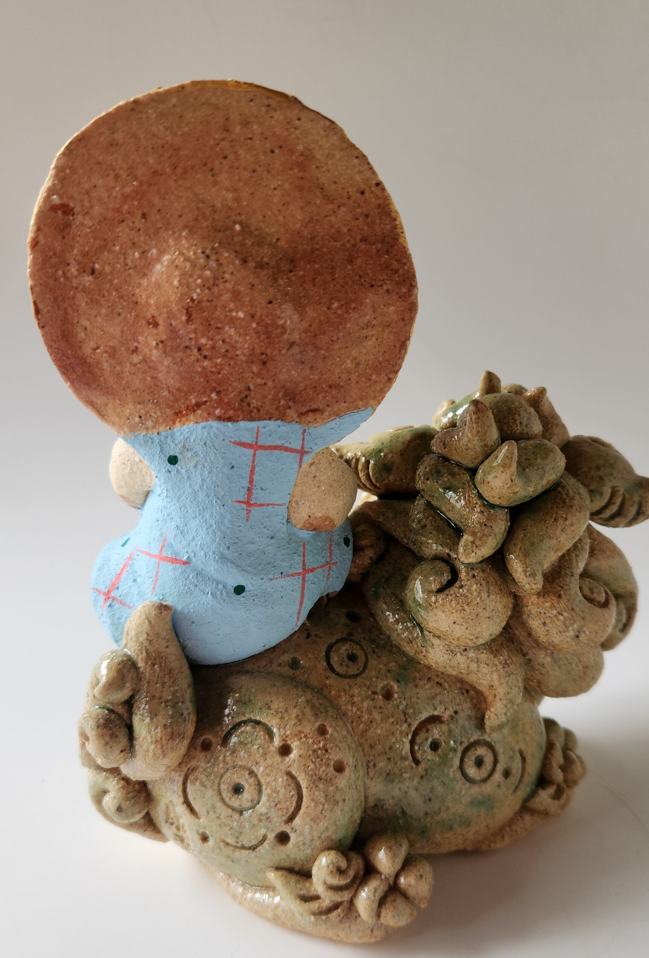 材料は陶土を使い釉薬とアクリル絵の具で仕上げています。